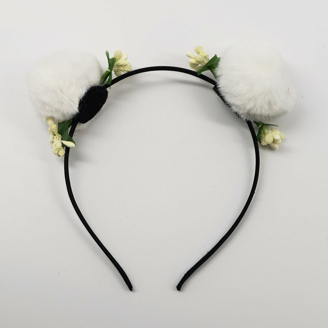 - Headband with white pom poms and flower buds