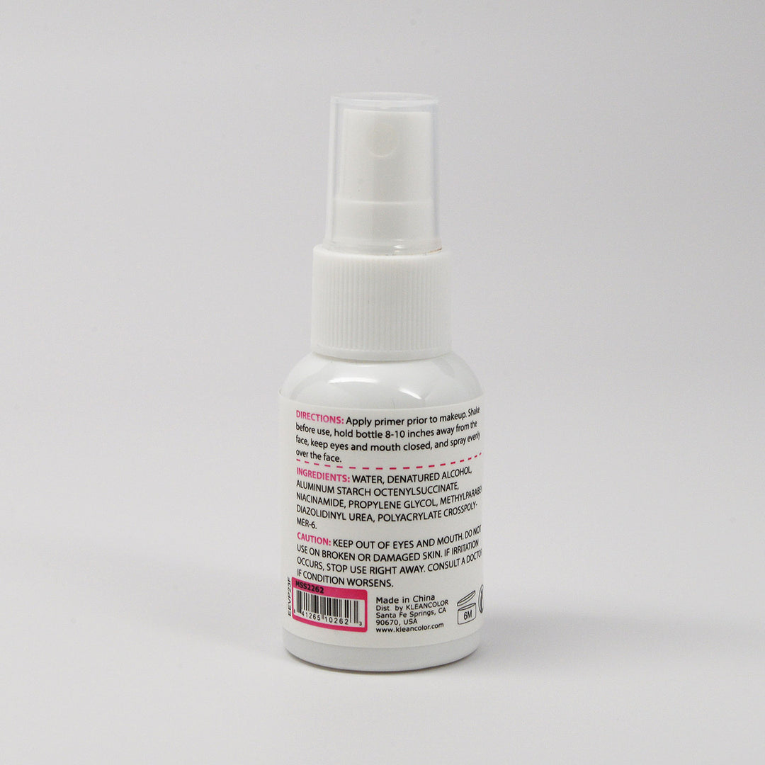 Directions: Apply primer prior to makeup. Shake before use, hold bottle 8-10 inches away from the face, keep eyes and mouth closed, and spray evenly over the face.