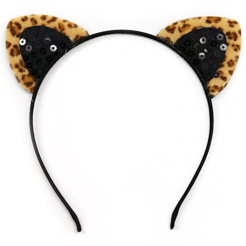 - Leopard pattern with black sequins cat ears headband